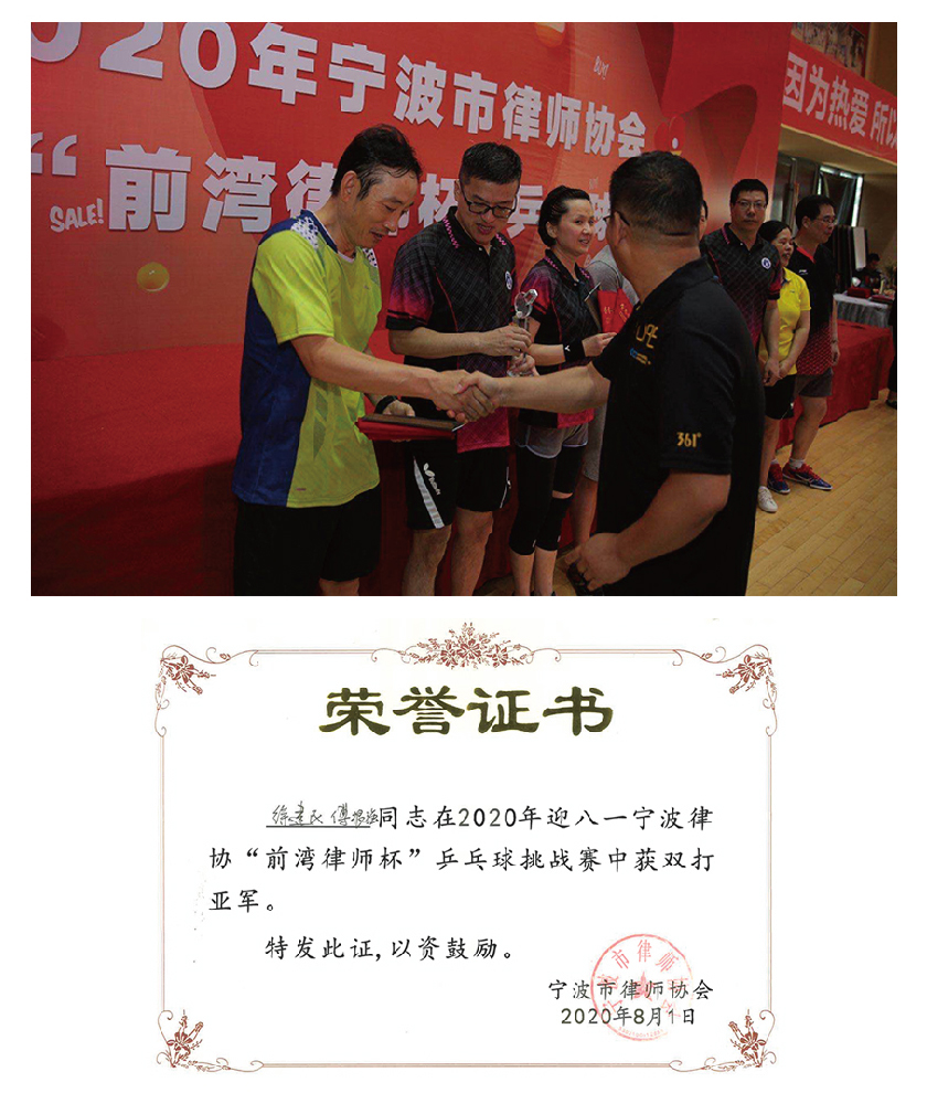 另有高级合伙人徐建民与同行律师精彩配合获得双打亚军