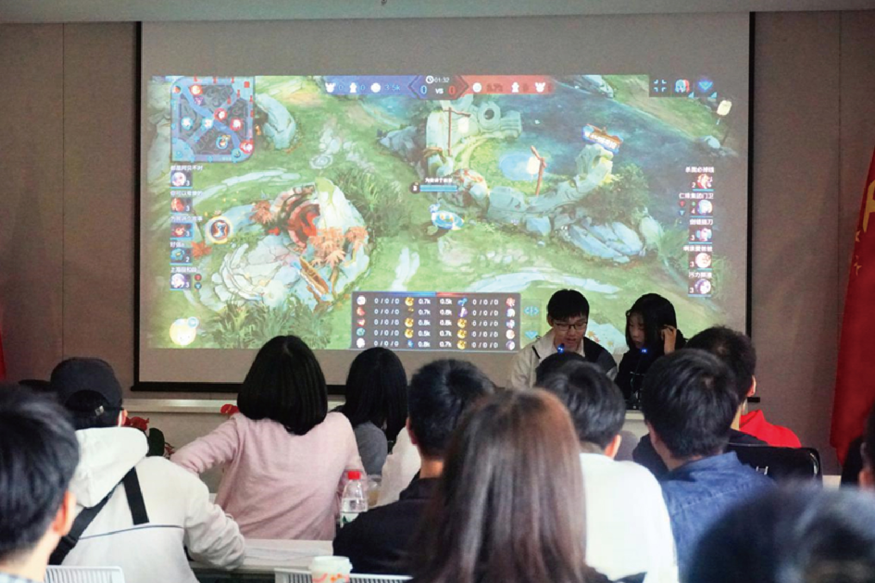 比赛现场气氛热烈,大家目不转睛地盯着投影屏,伴随着“三杀”、“五杀”、“团灭”的机器播报传来阵阵呐喊欢呼。第二天淘汰赛,面对顺利出线的另外七支强队,“海可以”战队戒骄戒躁、稳扎稳打,挺进四强。在最后的季军争霸赛中我队惜败,最终获得了第四名的成绩。