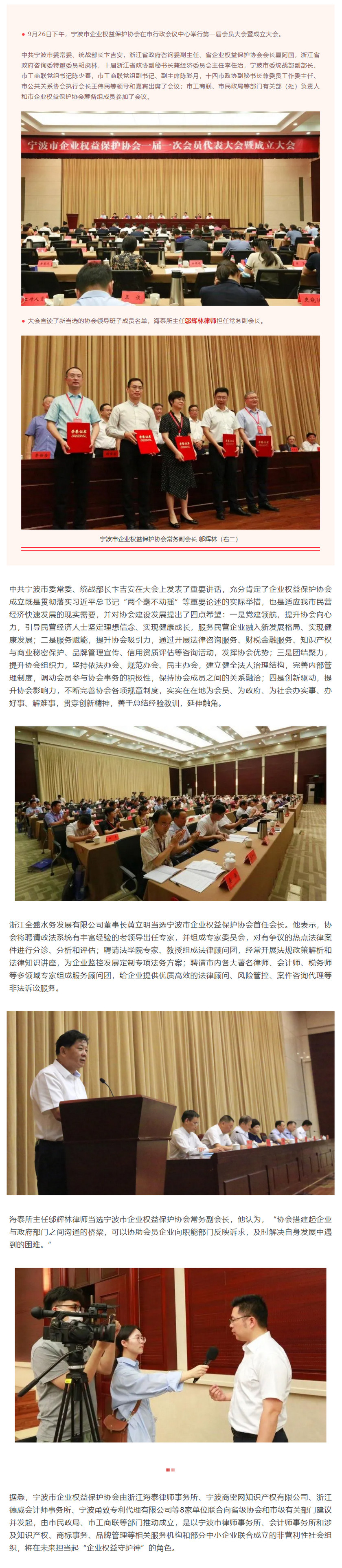 海泰所主任邬辉林律师当选宁波市企业权益保护协会常务副会长 | 海泰荣誉