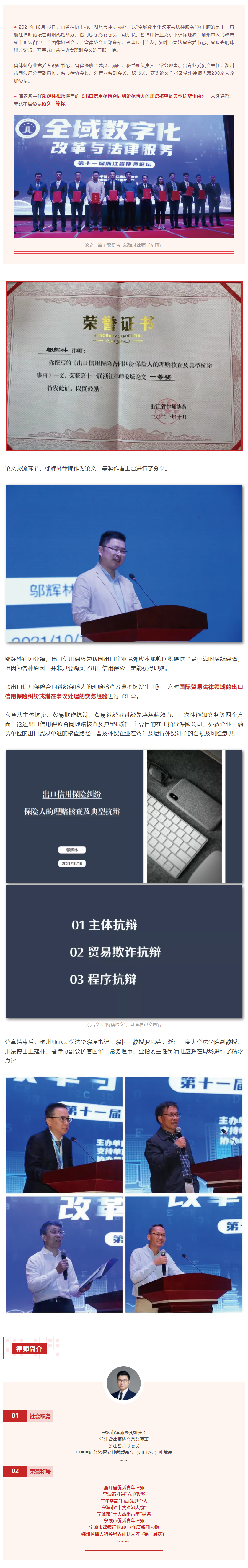邬辉林律师论文荣获第十一届浙江律师论坛论文一等奖 | 海泰荣誉