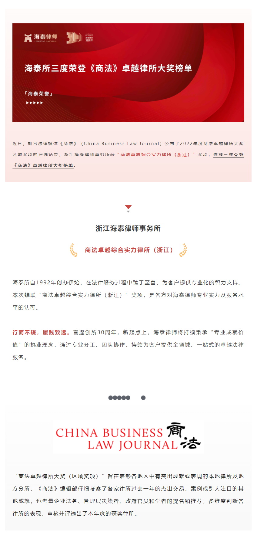 海泰所三度荣登《商法》卓越律所大奖榜单 | 海泰荣誉