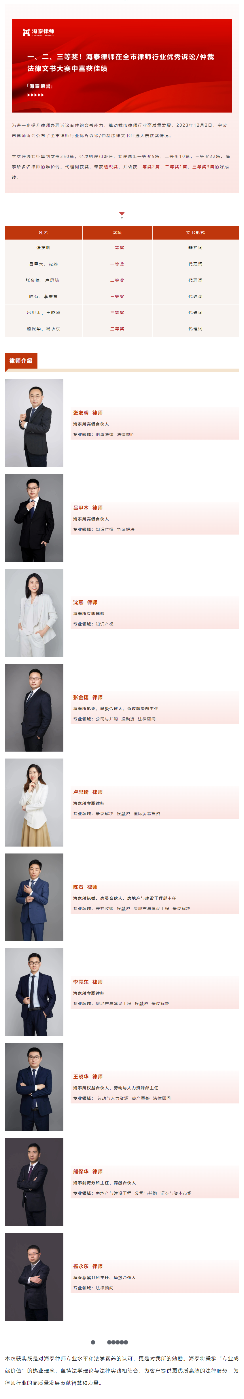 一、二、三等奖!海泰律师在全市律师行业优秀诉讼/仲裁法律文书大赛中喜获佳绩