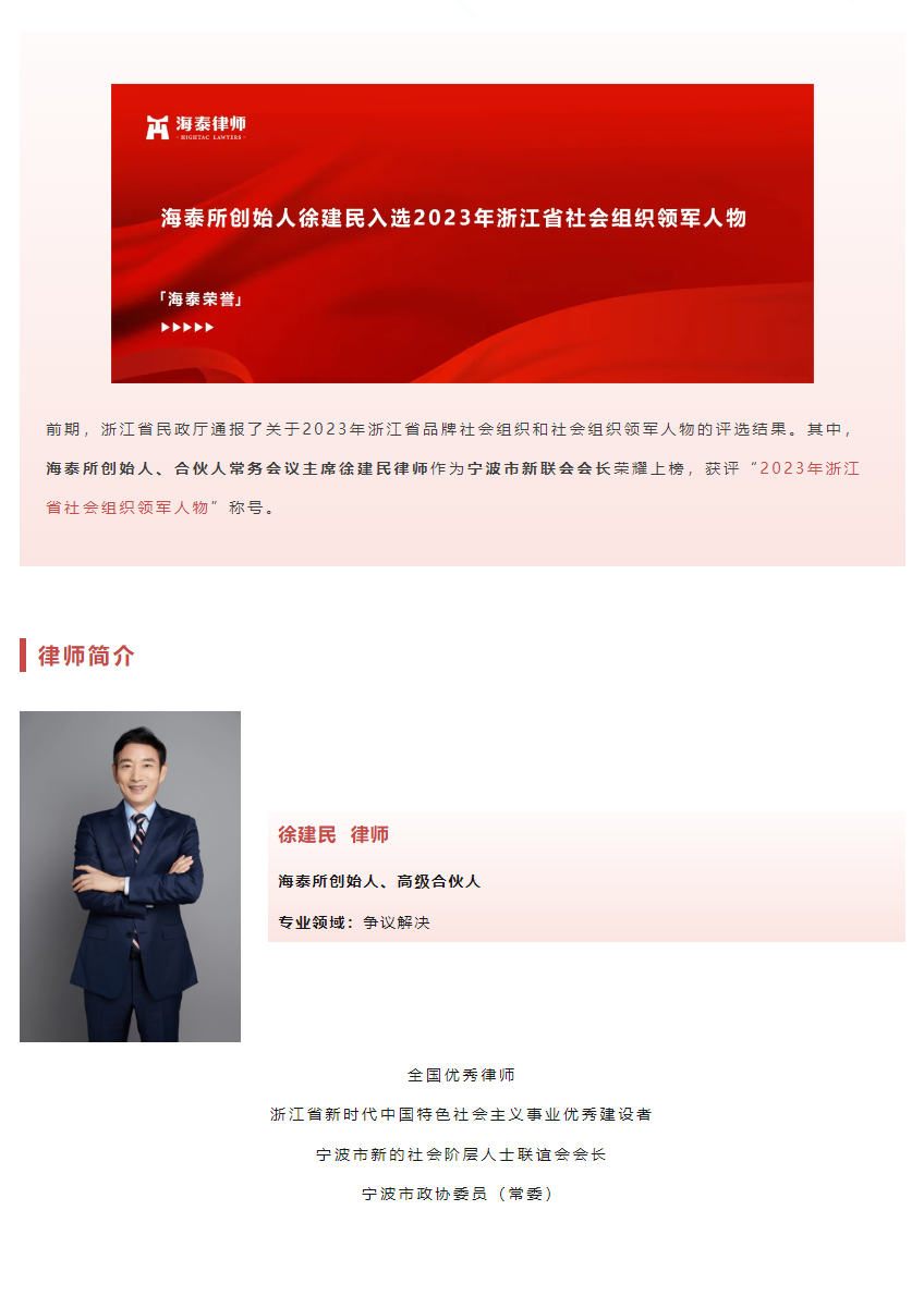 海泰所创始人徐建民入选2023年浙江省社会组织领军人物