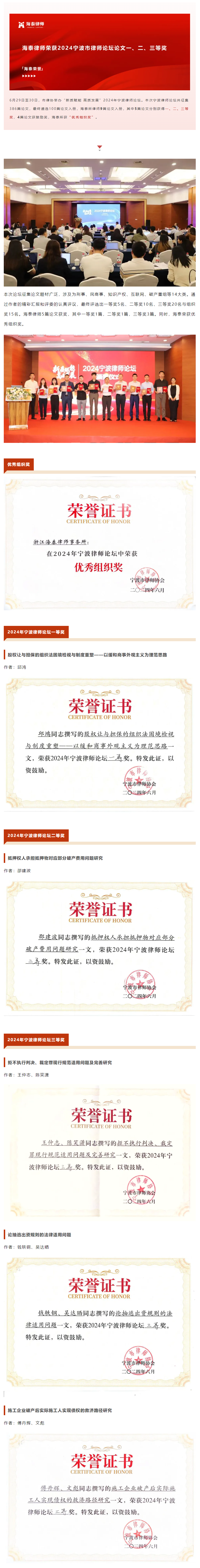海泰律师荣获2024宁波市律师论坛论文一、二、三等奖
