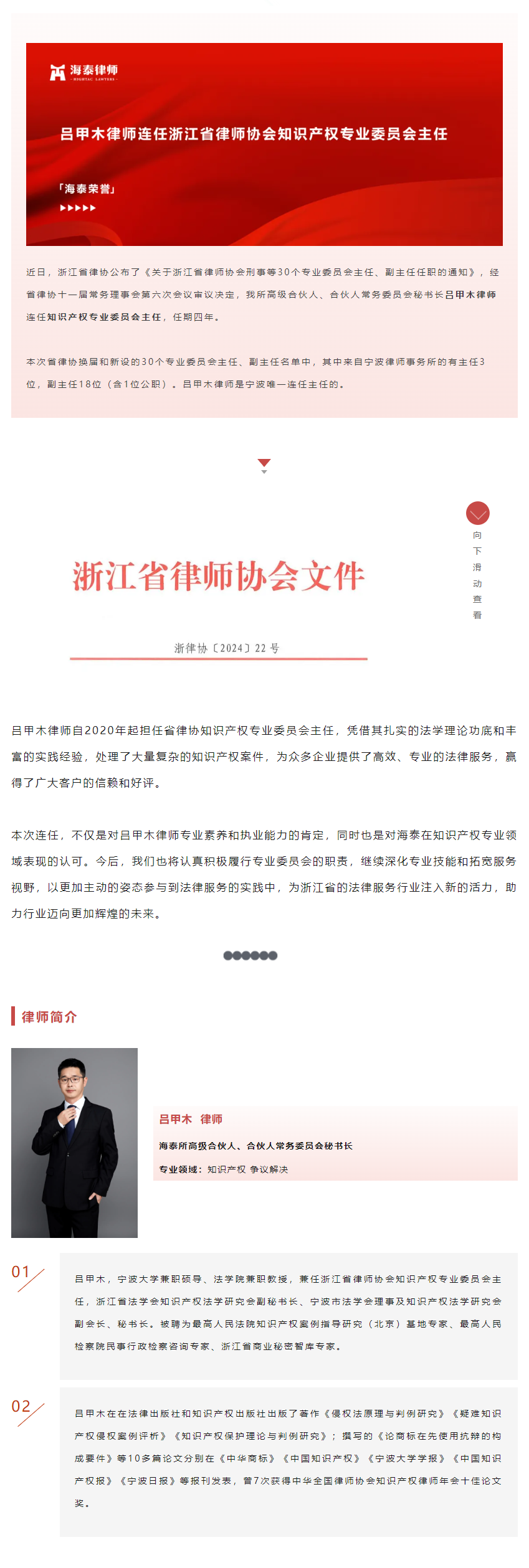 吕甲木律师连任浙江省律师协会知识产权专业委员会主任