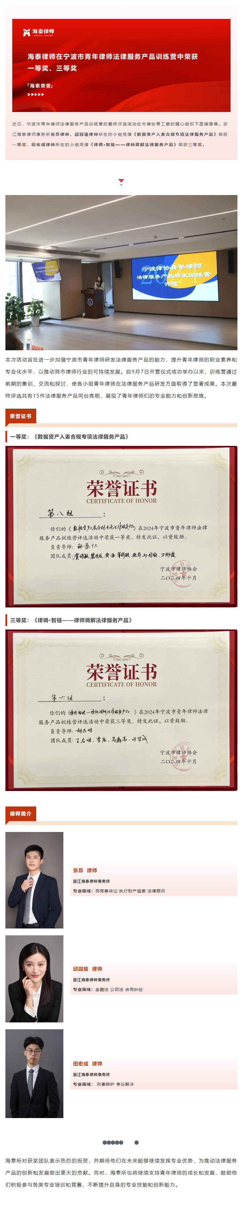 海泰律师在宁波市青年律师法律服务产品训练营中荣获一等奖、三等奖