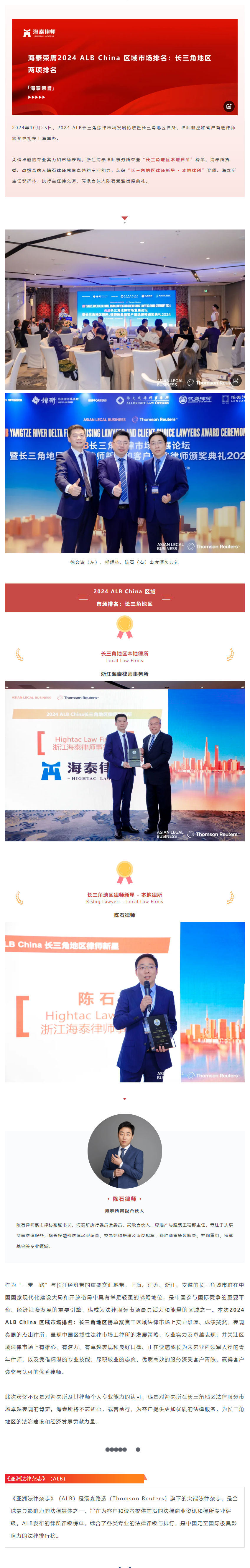 海泰荣膺2024 ALB China 区域市场排名:长三角地区两项排名