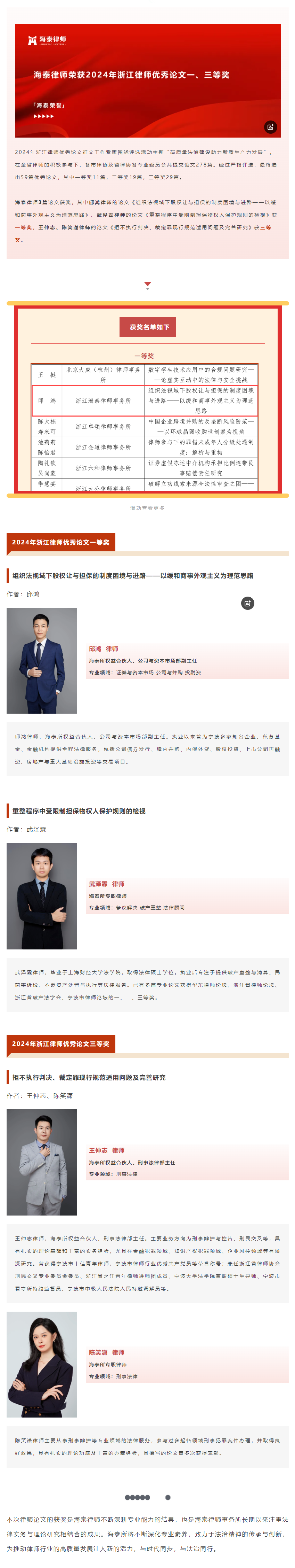 海泰律师荣获2024年浙江律师优秀论文一、三等奖