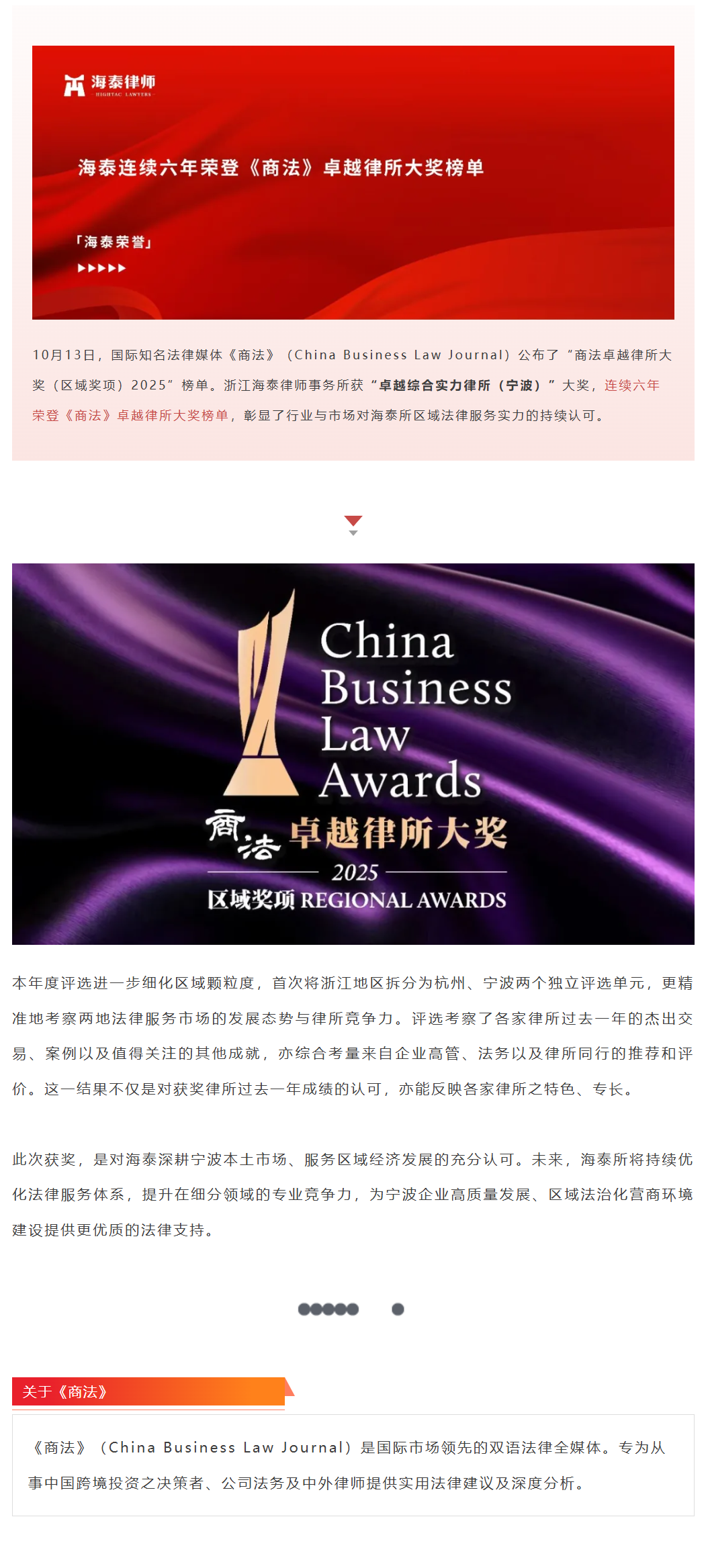海泰连续六年荣登《商法》卓越律所大奖榜单