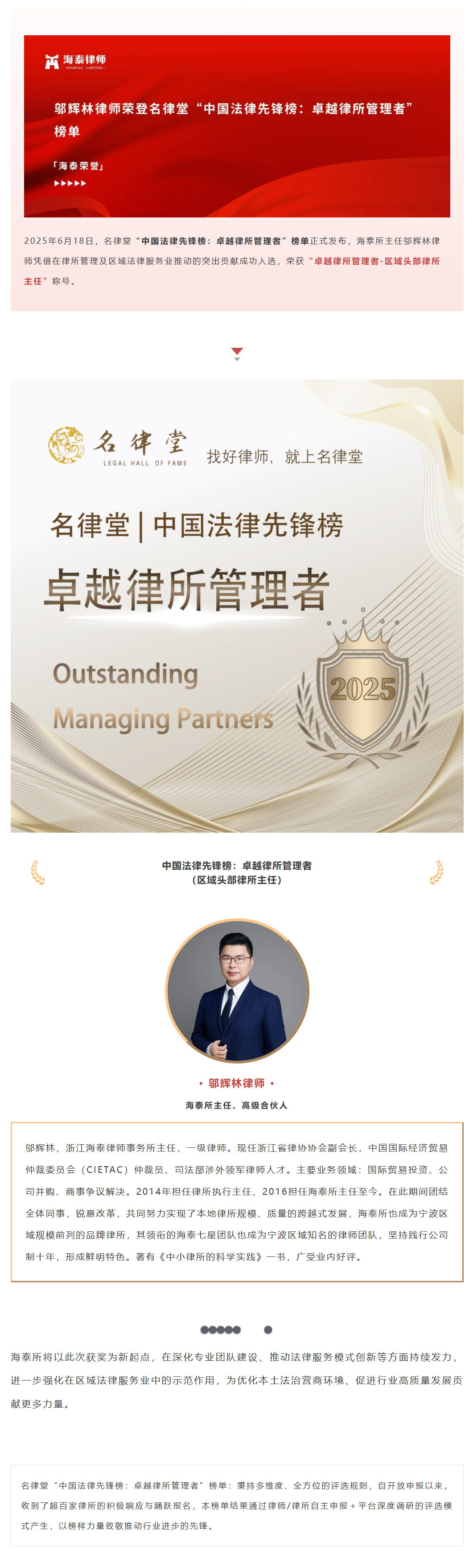 邬辉林律师荣登名律堂“中国法律先锋榜:卓越律所管理者”榜单