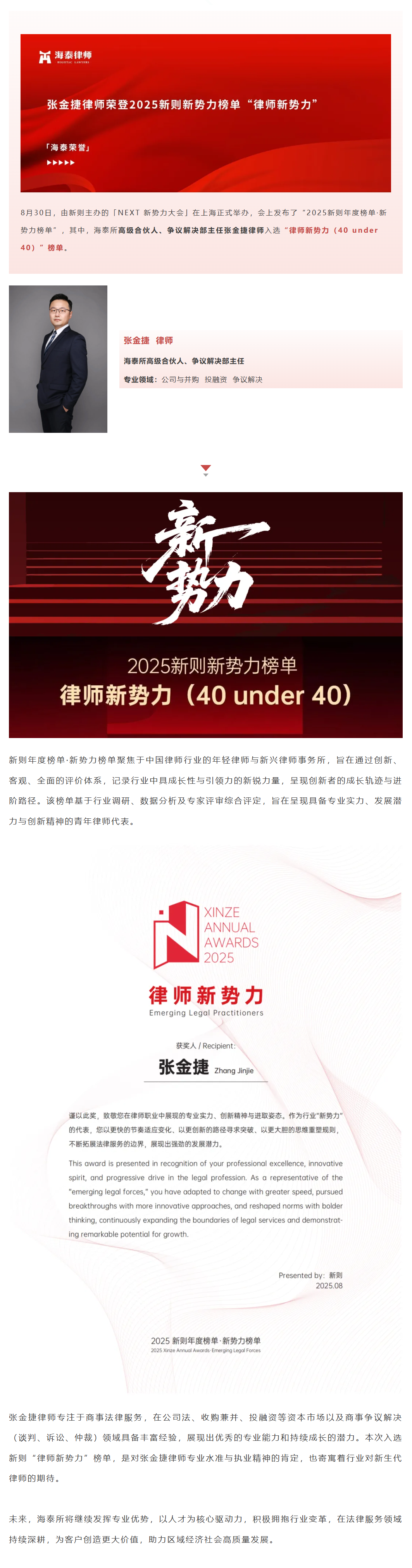 张金捷律师荣登2025新则新势力榜单“律师新势力”