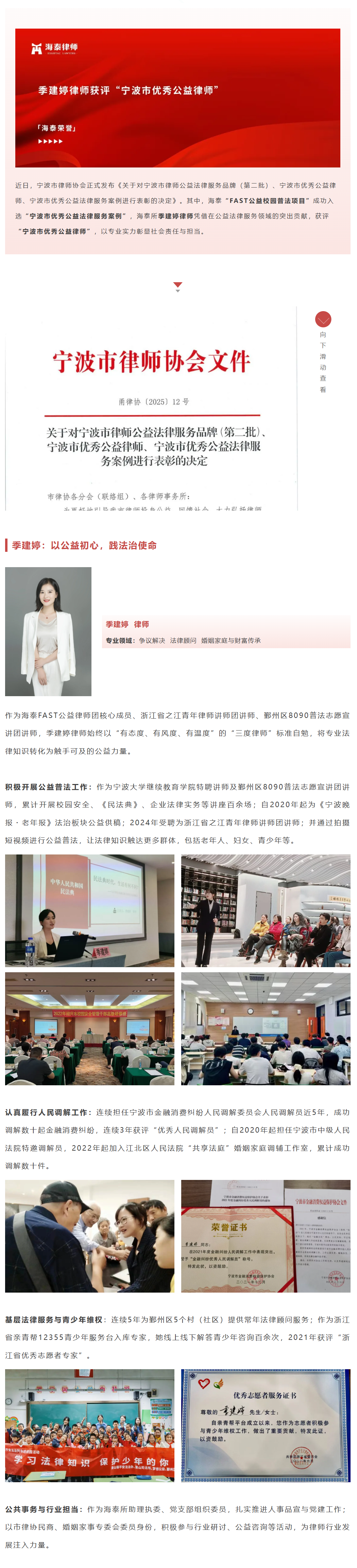 季建婷律师获评“宁波市优秀公益律师”