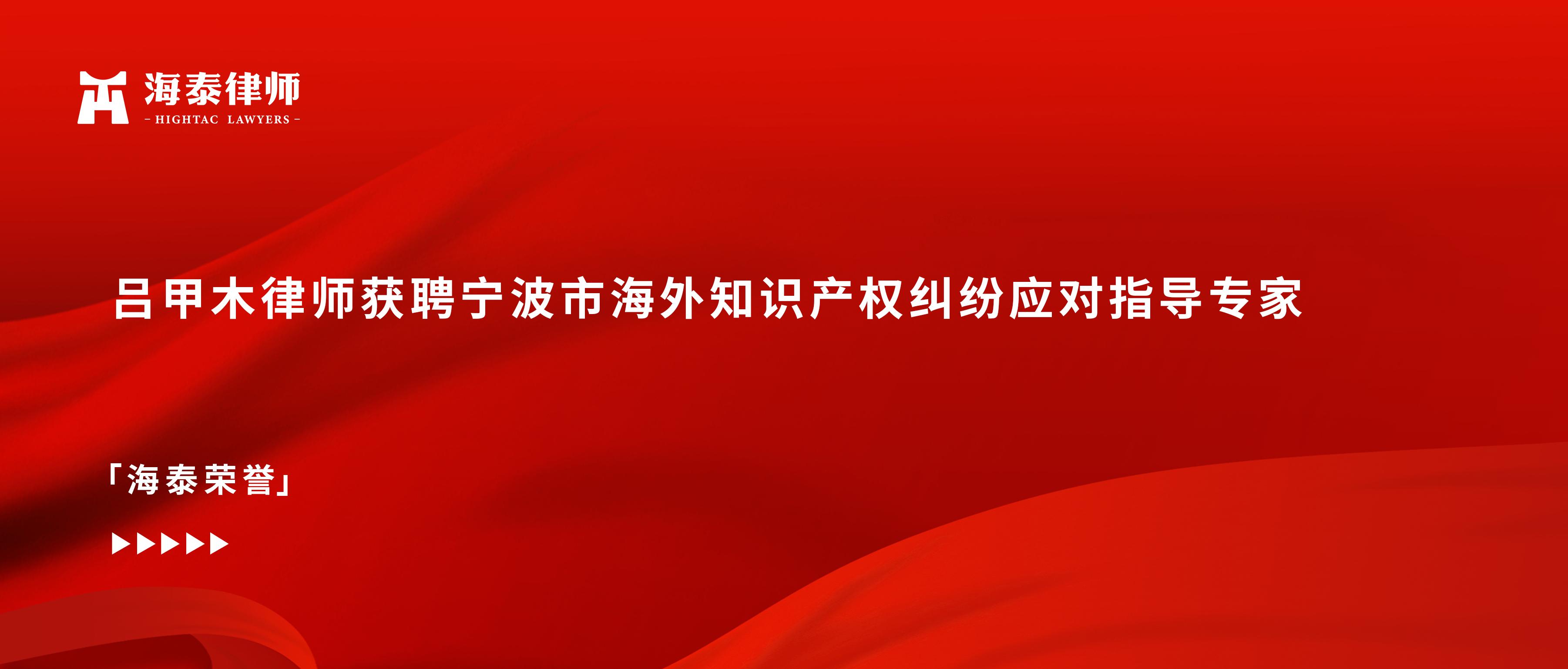 吕甲木律师获聘宁波市海外知识产权纠纷应对指导专家
