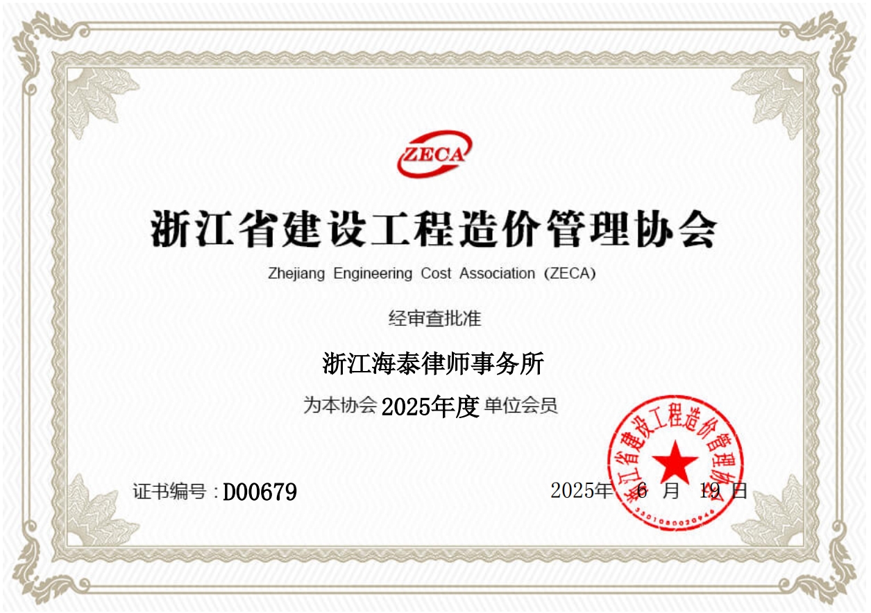 海泰所加入浙江省建设工程造价管理协会单位会员