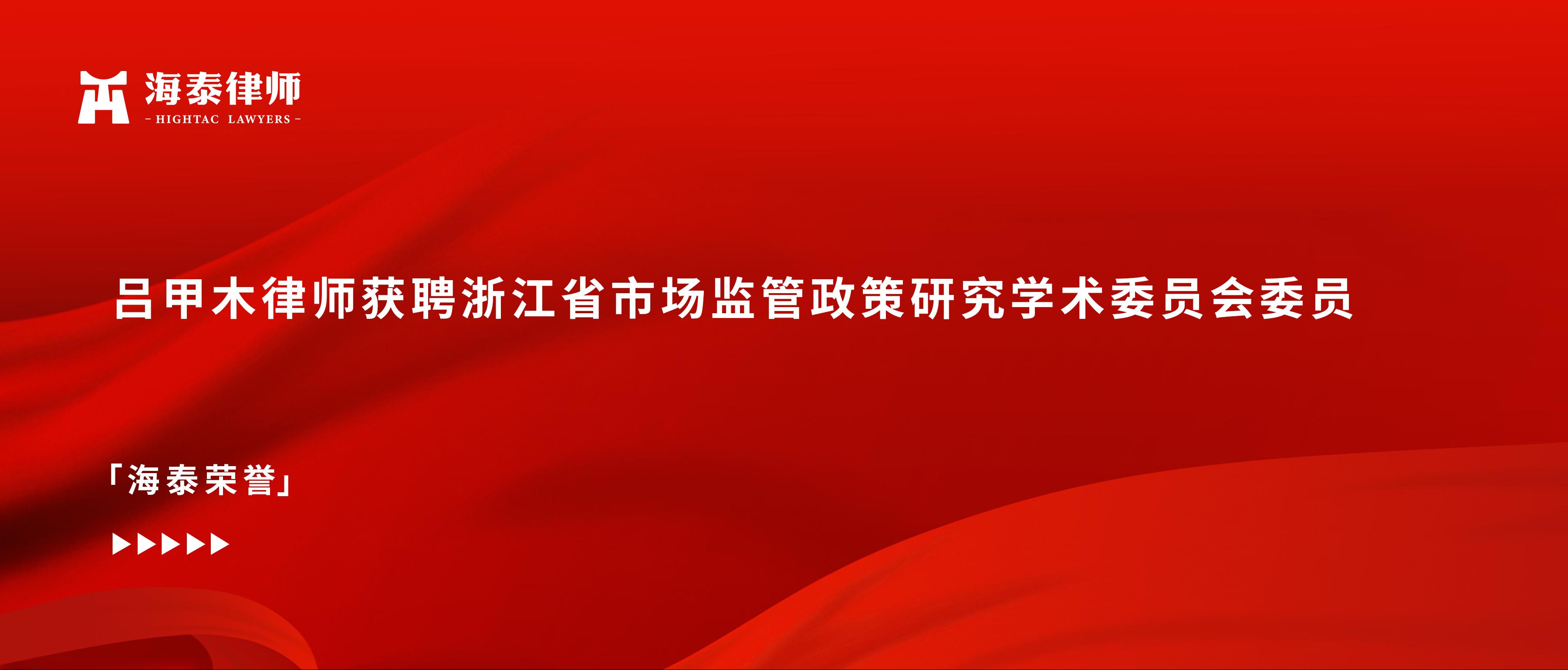 吕甲木律师获聘浙江省市场监管政策研究学术委员会委员