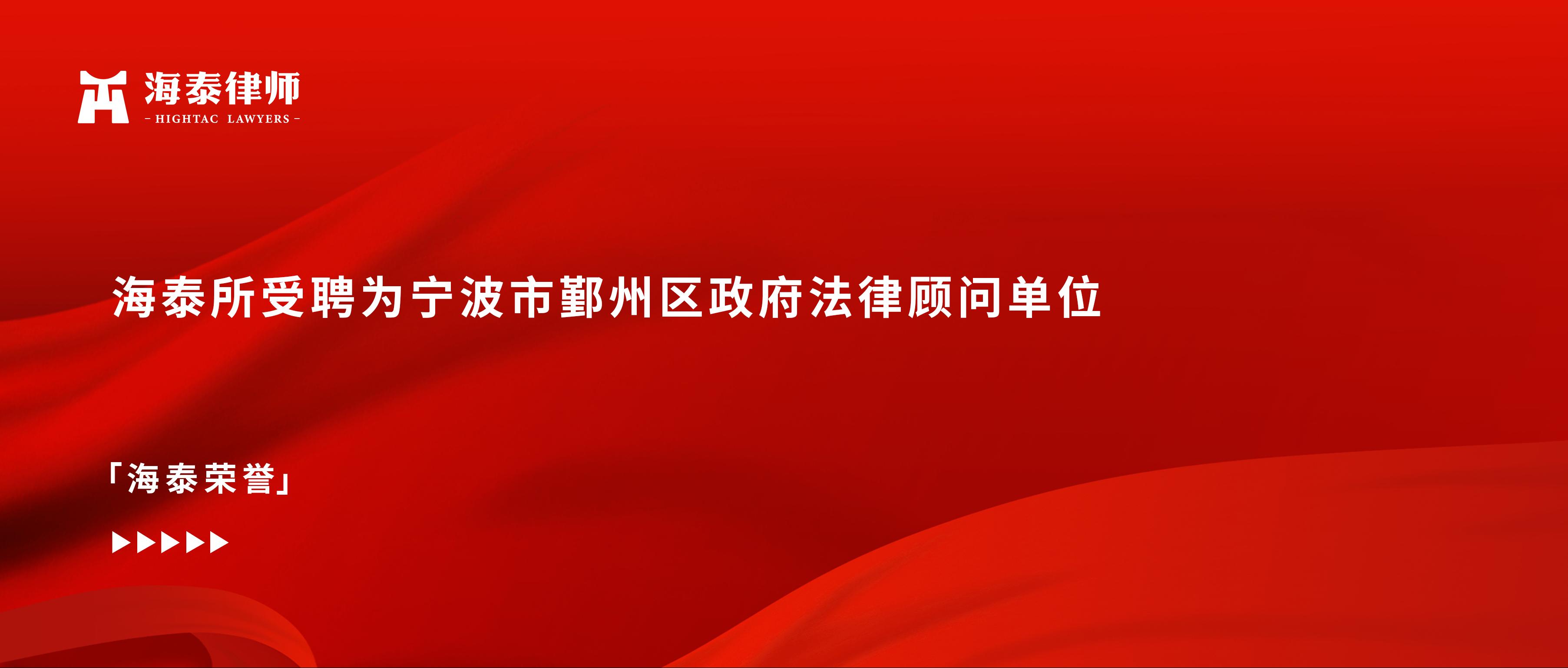 海泰所受聘为宁波市鄞州区政府法律顾问单位