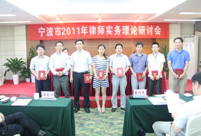 董浩樑律师(一排右三)的《〈刑法修正案(八)〉刑罚调整问题概论》、熊保华、傅丹辉(二排左一)律师的《拆迁非住宅房屋中承租人的救济途径探析——以“拆迁条例”与“征收条例”比较为视野》、王晓华律师(一排右二)的《加班工资相关实务问题分析》获得三等奖