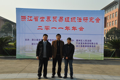 2011年12月17日至18日,由浙江省法学会世贸组织研究会、浙江万里学院法学院主办,鄞州人民法院、浙江海泰律师事务所、宁波富田集团协办的为期两日的浙江省世贸组织法研究会2011年年会在万里学院举行。