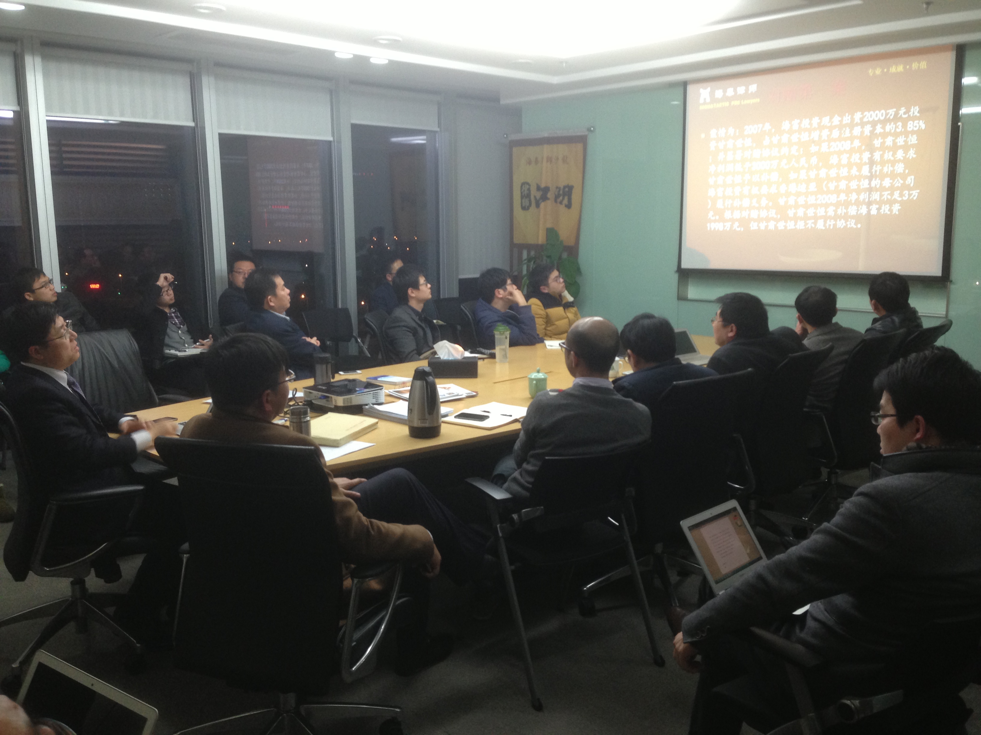 2015年1月22日晚,浙江海泰律师事务所2015年第一次律师业务培训在中心会议室举行。主讲人是邵建波律师,主讲题目为“公司法之股东权益保护”。邵律师首先介绍了股东权益的七大类别,接着着重介绍了股东的知情权、认购权、异议权和转股权。