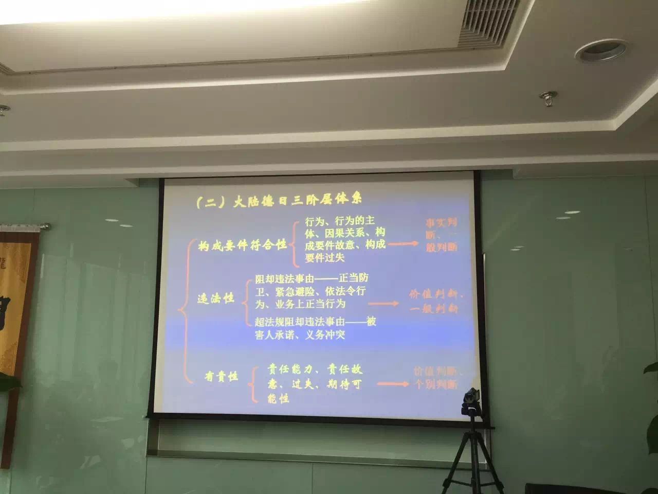 四个具体的案件模型,分别说明了刑法犯罪论、刑罚论专业上的四个问题,是属于紧急避险还是属于共同犯罪的胁从犯?我们需要的是事实判断还是价值判断?不同的法系,文化和哲学思维的不同,演绎的方法和结论完全不同。阻却违法还是阻却责任,在性质上更是差距太大。李娜讲授的讲座,令大家脑洞大开。概念、判断、推理,李教授讲解理论的同时,也提出了自己对这个问题在立法的建议。演讲过后,根据与会人员的提问,李博士还就刑法学近十多年来观点的流变、特别是就传统犯罪四构成要件和目前流行的三阶层理论之间的差异和兼容性、以及各自人文价值和民族特性等等,进行了独到的分析。