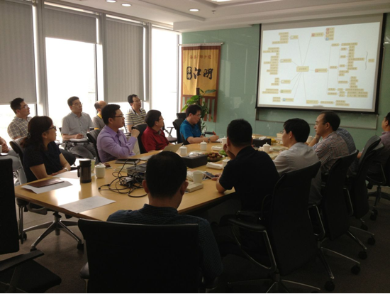 2015年6月12日上午,象山司法局由胡副局长带队,组织象山县各律所主任、副主任赴海泰所开展学习交流。他们一行在参观了海泰所办公环境后到中心会议室进行座谈。首先由行政部向大家介绍了海泰所的基本情况、组织架构、办所理念、发展战略和工作亮点。接着由主任执委邬辉林从律所的关键要素、组织结构、团队合作、财务制度、办案程序、 信息化、律所文化、面临挑战八个方面,进行了详细介绍,财务执委张剑锋就海泰所的财务制度进行了补充说明。然后来访的象山司法局领导和律师就自己疑惑的和感兴趣的问题向邬律师提问,最后来访领导及律师与徐会长、陈波律师进行互动交流。