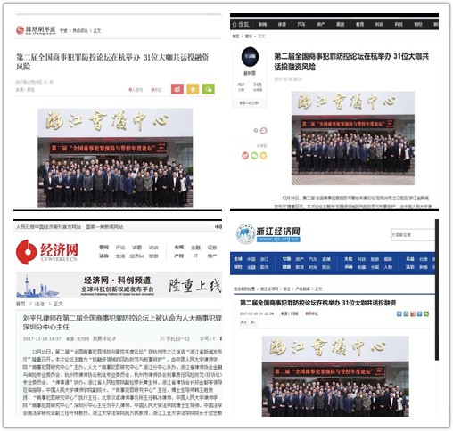 全国商事犯罪风险预防与管控年度论坛是中国人民大学律师学院商事犯罪研究中心年会,该论坛是商事犯罪研究领域专家发布最新研究成果和相互切磋观点及做法的成熟平台,受到理论界和实务界的广泛关注。此次论坛受到了凤凰网、浙江经济网、神州律师网、搜狐平台、经济网(人民日报中国经济周刊官方网站)等多家媒体的报道。