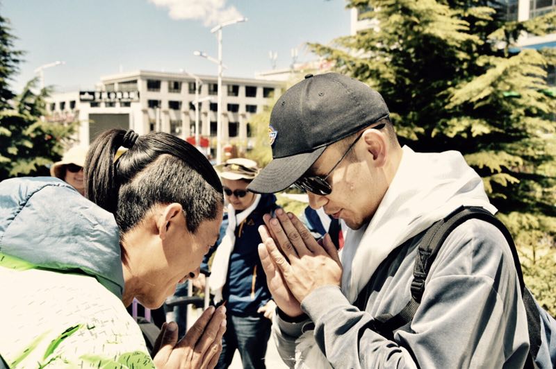 早晨第一束阳光照在八廓街斑驳的地板上时,最先踏上这里的,是朝拜和转经的藏民。大昭寺广场上的地面,到处都是磕长头的印记,沿着八廓街慢慢走,能听到此起彼伏,却意外能让人平静的诵经声。和他们一起,顺时针沿着八廓街一圈一圈地走,看到那些年纪不同、性别不同、装饰不同,却带着相同的虔诚和清澈,带着相同的信仰的信徒,朝着一个方向,心无旁骛。