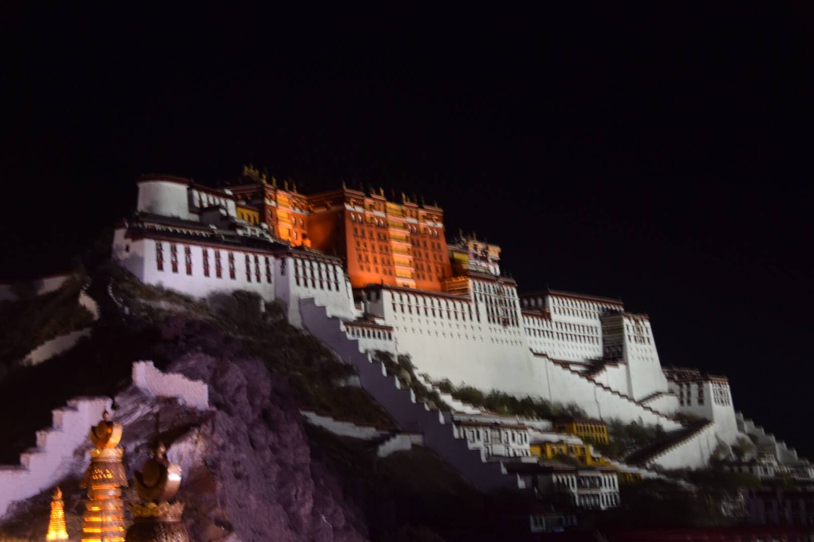 等夜幕降临,我们打车出发,去领略夜幕下布达拉宫的风采。出租车师傅是四川人,闲聊中,和我们娓娓道来他和西藏的缘分,在西藏谋生的四川人越来越多,遍地的川菜馆便是最好的印证,他们中的许多人是为了谋生,但也有那么一些人,是被这片土地所深深吸引,不舍离去。远远能瞥见布达拉宫时,司机师傅兴奋地告诉我们,前面就是了。夜晚灯光下的布达拉宫,白得圣洁庄严,宛如一颗明珠,你知她珍贵,知她美丽,被她所吸引,却又不忍也不敢去亵渎。