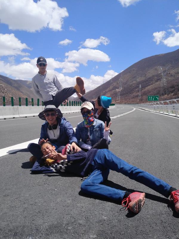在南方生活长大的我们,沿路的风景本就是旅程的重要部分,初到西北,这边的山水树木,还有米拉山口流下的水汇成的拉萨河,都足以引起我们的惊叹。由于西藏的公路是根据路况设定时速的,不能在规定站点间提前跨越检查站,所以在检查站前停下休息时,我们得以和“最贵公路”留下一张合影。