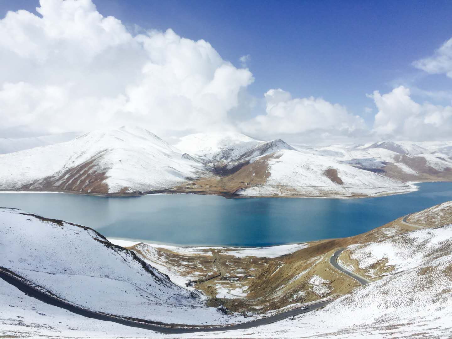 羊卓雍措是西藏的三大圣湖之一,在藏人心目当中被看做是“神女散落的绿松石耳坠”。去看你的一路很是漫长,盘山公路蜿蜒而上,翻过山头才能得见,对于恐高的小伙伴,是个不小的挑战。但见到你以后,这一路颠簸,都不值一提,于我们游客而言,光是你的美貌,就足以摄人心魄。不同于巴松措的蓝,她美得更加圣洁,惊艳如梦。有人说,人生就像这探寻羊湖的过程,没有迂回曲折和义无反顾,就没有柳暗花明的喜悦和俯瞰世界的惊艳。