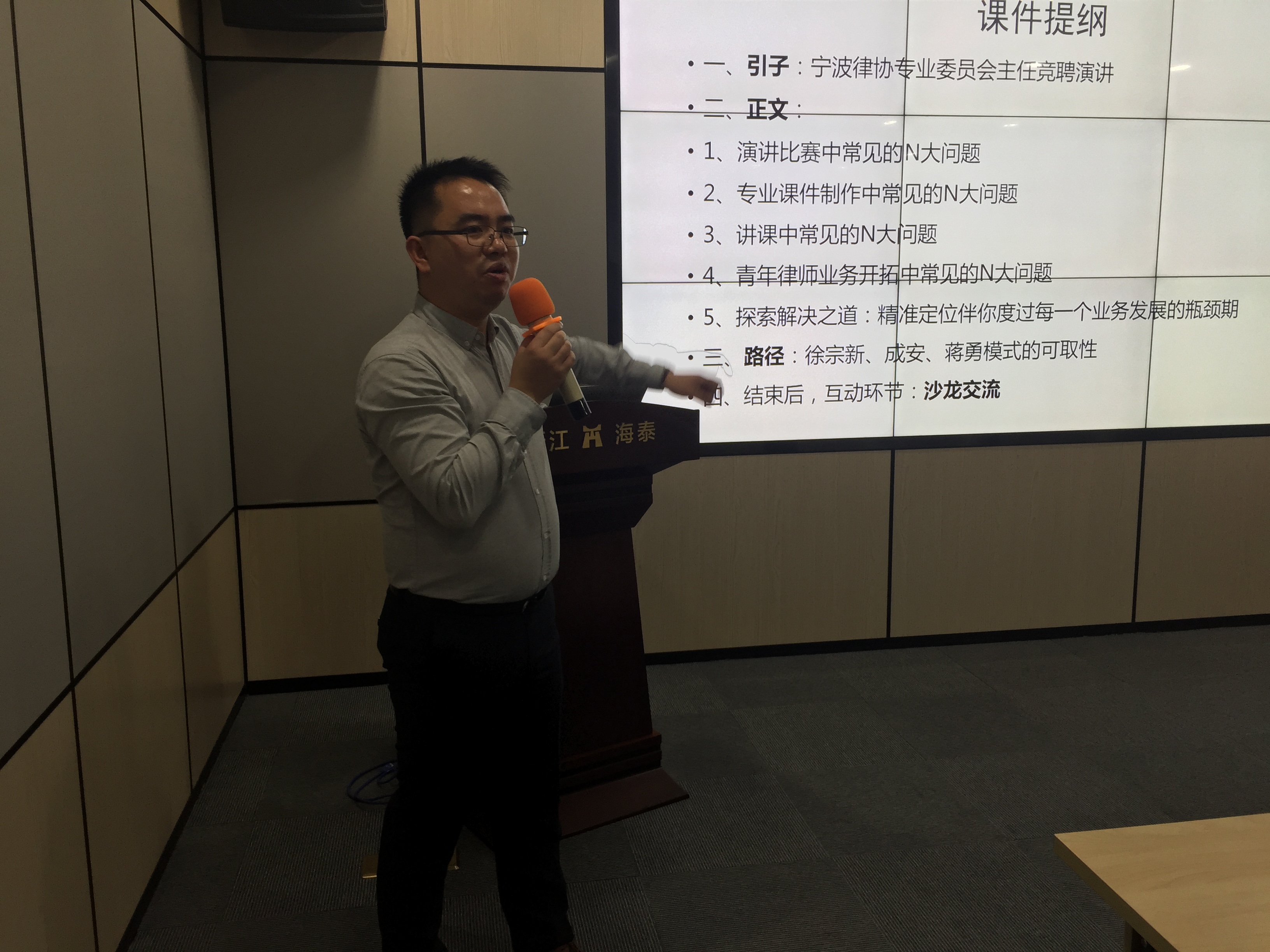 法律顾问委员会主任单莹律师以“演讲技巧与律师业务的开拓”为主题为海泰所律师进行了一次专题讲座。本次讲座单主任从演讲和法律业务两个角度切入,结合其亲身事例,详细剖析了法律产品、顾问单位以及青年律师执业中所遇到的困难等问题,最后将演讲和法律业务的开拓完美结合,提出用演讲去开拓业务的操作模式,为律师开拓案源提供了新思路。