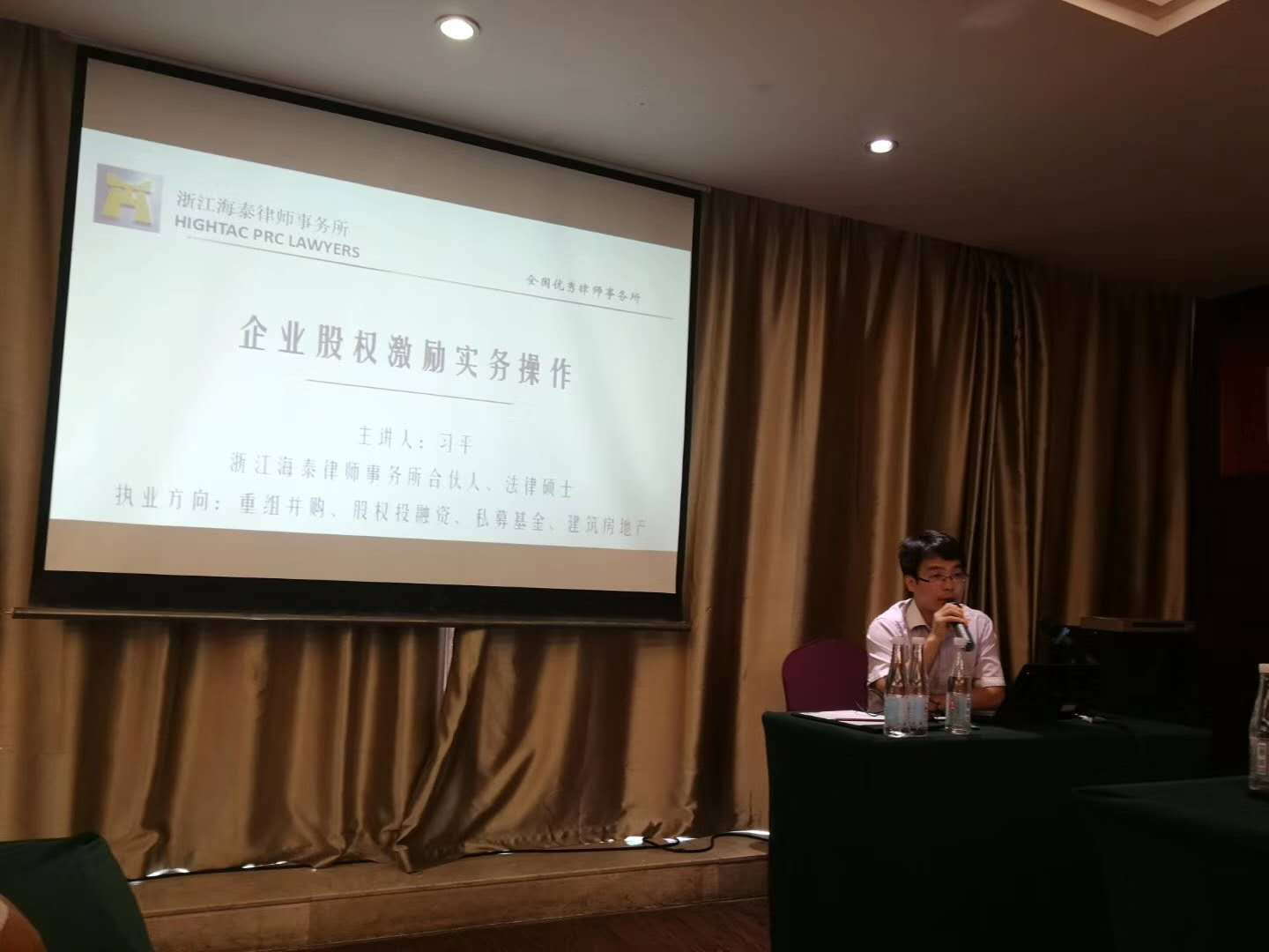 2018年8月30日、8月31日,海泰所合伙人习平律师受宁波股权交易中心和宁波市人力资源产业园的邀请,为近百位企业家、企业高级管理人员开展“企业股权激励实务操作”专题讲座。
