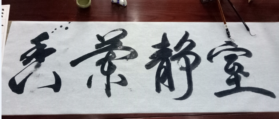 品一口茶香,听一耳思想,旁边又有文房四宝的墨香,确认过这是一场高副格的心灵修行。随行的杨建龙老师即兴提笔书写的“室静茶香”思之又可以凑成一香——德馨。
