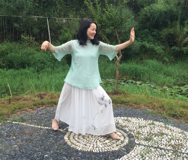 大家兴致勃勃的跟着师傅学习起无极桩来。无极桩要诀:桩者心无杂念,平心静气,且周身放松,松而不僵,又要有落地生根的稳,切不可左右晃动。看似简单动作,做好却是不易,单心无杂念一项做到就不易,耳边鸟声一起我的意识就瞬间被带走了。太极的无极桩和佛家的打坐及印度瑜伽的冥想在各自的派系中均是最基础但也都是最重要的。可见,无论哪种养生或修身养性之法,拨开烦扰回归本心都很重要。