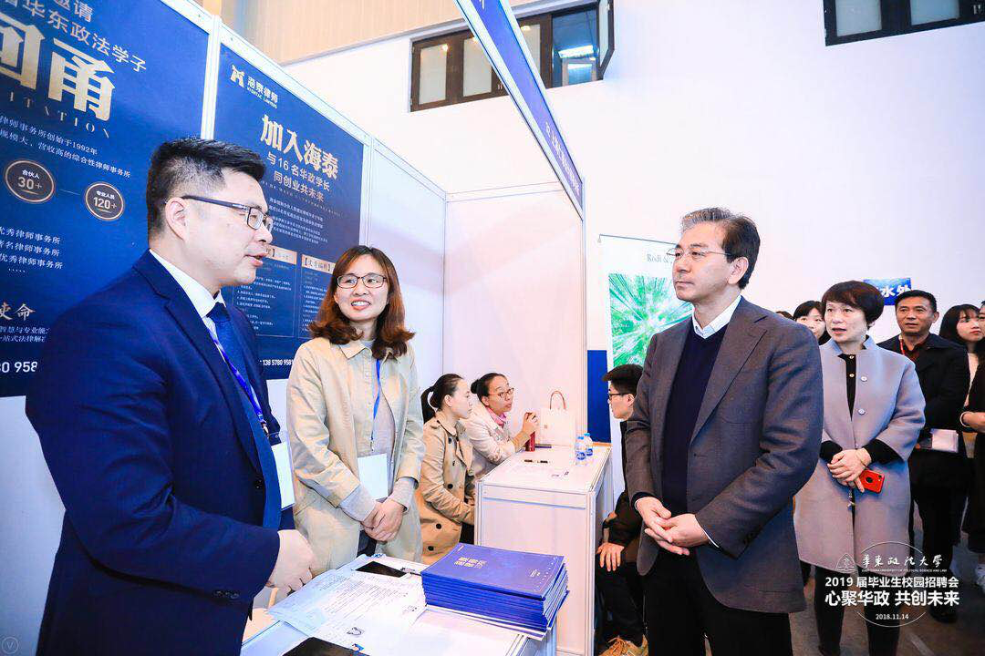 11月14日,由华东政法大学和智合联合举办的2019华东政法大学2019届秋季校园招聘会在华东政法大学上海松江校区举行,来自全国各地249家用人单位参会。海泰所主任邬辉林带着海泰合伙人们的重托亲赴招聘会,与上海、北京知名律所同台竞抢人才。
