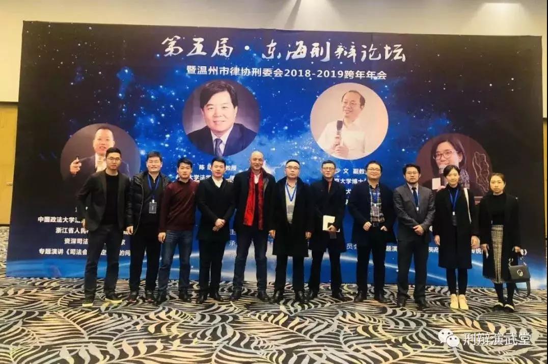 2019年1月5日至6日,海泰刑事演武堂堂主张友明律师、执行堂主杨军汉律师率团队十名成员,参加了在温州铂尔曼大酒店举行的第五届东海刑辩论坛暨温州市律协刑委会2018-2019跨年年会。本次活动为海泰刑事演武堂总第75期活动,也是本堂2019年度第一期活动。