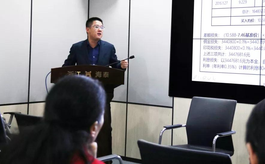2019年3月27日晚,第13期“海泰大讲堂”在浙江海泰律师事务所第八会议室举行。宁波市律师协会团委书记、海泰事务所权益合伙人、“金融与执行团队”负责人之一的郑勇律师就“上市公司证券虚假陈述民事赔偿案件”,结合自身长期实务经验以及研究心得,与所内近五十名律师进行交流和学习。