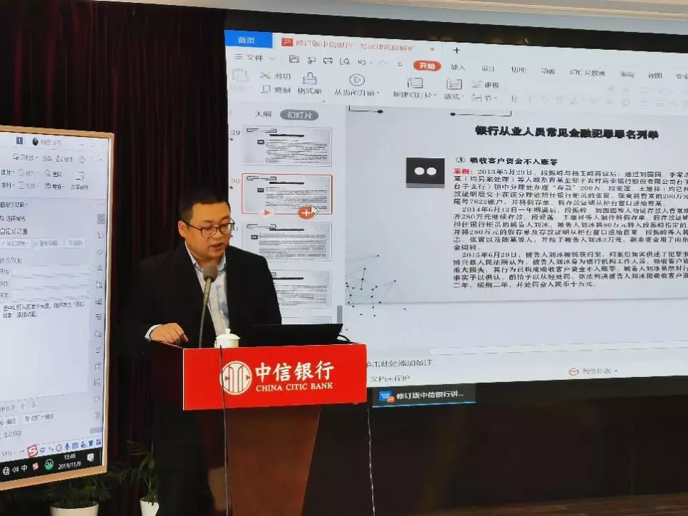 此次授课不仅为分行的员工释法解惑,而且为促进银行系统合规发展,提升行业信誉以及法律风险防控起到了保驾护航的作用。