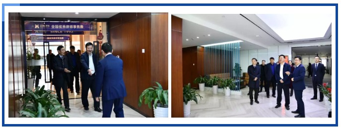 市司法局局长吕强、副局长罗仙兵、市律师协会秘书长黄爱琴、市律师协会监事长徐建民、海泰所主任邬辉林、海泰所权益合伙人杨静、张金捷等陪同参观办公区并进行座谈。