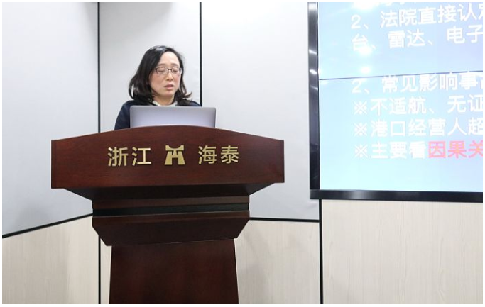 海泰所权益合伙人、宁波市骨干型名优律师张剑锋从海事海商与海泰所的渊源切入,分门别类地举例说明海事法院管辖范围,并生动形象地介绍了常见海事侵权纠纷类型案例,让在场律师对海事海商案件形成大体认知轮廓。