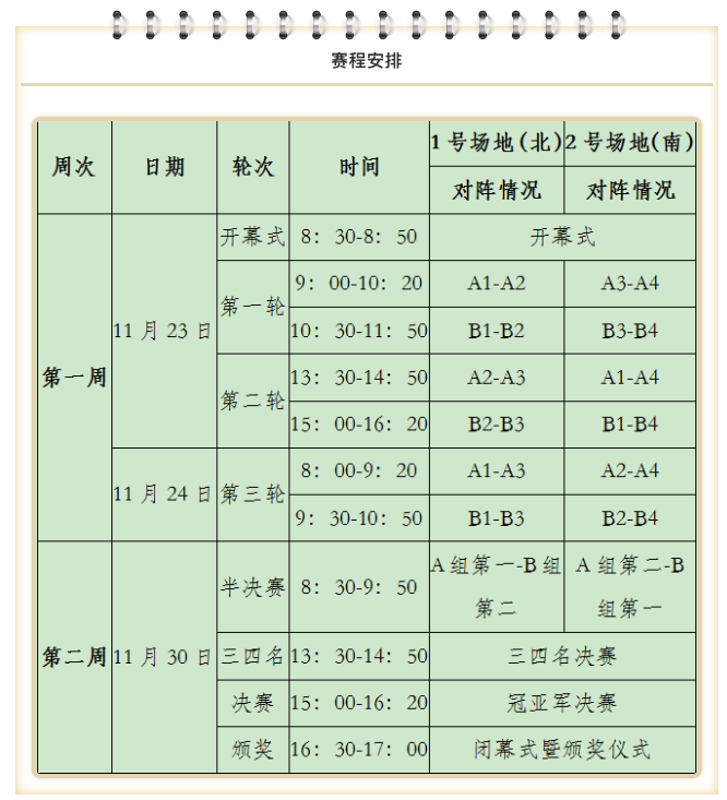 本届比赛共八支球队报名参赛,分为AB两个小组,种子队为东道主海泰足球队和上届冠军和义观达足球队,分别分入A组的A1和B组的B1,其他球队需要进行抽签来确定自己的比赛分组和小组序号。
