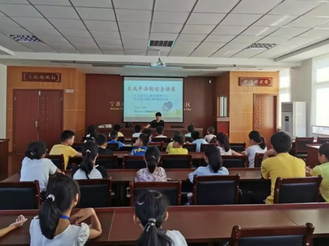为增强未成年人的自我保护意识,远离违法犯罪,让未成年人懂法、用法,2019年7月22日,浙江海泰(宁波经济技术开发区)律师事务所的刘贞律师受邀来到北仑区大碶街道金泉社区,为假日学校的小朋友们带来了一堂未成年法制安全教育讲座。
