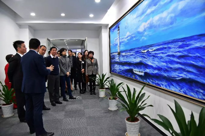 研讨会正式开始前,与会人员参观了海泰所位于航运广场29楼的办公室。黑白简明的装修风格、大厅海泰赋灯光背景、蓝海灯塔巨幅壁画以及近40米的书法艺术长廊等给参观者留下了深刻印象。