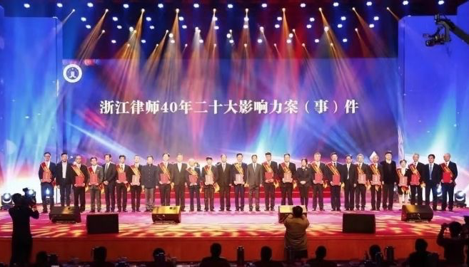 2019年11月18日晚,浙江省司法厅、省律师协会在省人民大会堂隆重举办庆祝律师制度恢复重建40周年暨省律协成立35周年大会。期间举行了浙江律师40年影响力案(事)件表彰仪式,入选“浙江律师40年影响力案(事)件”的承办人或相关人员代表上台领奖。