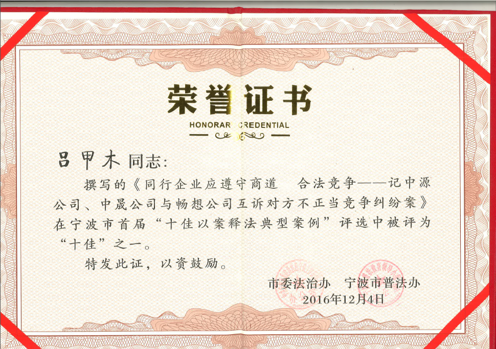 2015年2月3日,宁波中级法院对中源公司、中晟公司诉畅想公司案作出(2014)浙甬知初字第144号民事判决,判决畅想公司在其官网连续三日刊登对原告中源公司和中晟公司的致歉声明;赔偿两公司损失12万元。两天之后,宁波中级法院对畅想公司诉中源公司、中晟公司案也作出了(2014)浙甬知初字第196号民事判决,认定中源公司、中晟公司员工的邮件属于商业诋毁,在官网宣传时使用最高级形容词构成虚假宣传,其他行为不构成不正当竞争行为,判决两公司停止商业诋毁和虚假宣传行为,在官网连续三日刊登对畅想公司的致歉声明;赔偿畅想公司经济损失和合理费用共4万元。