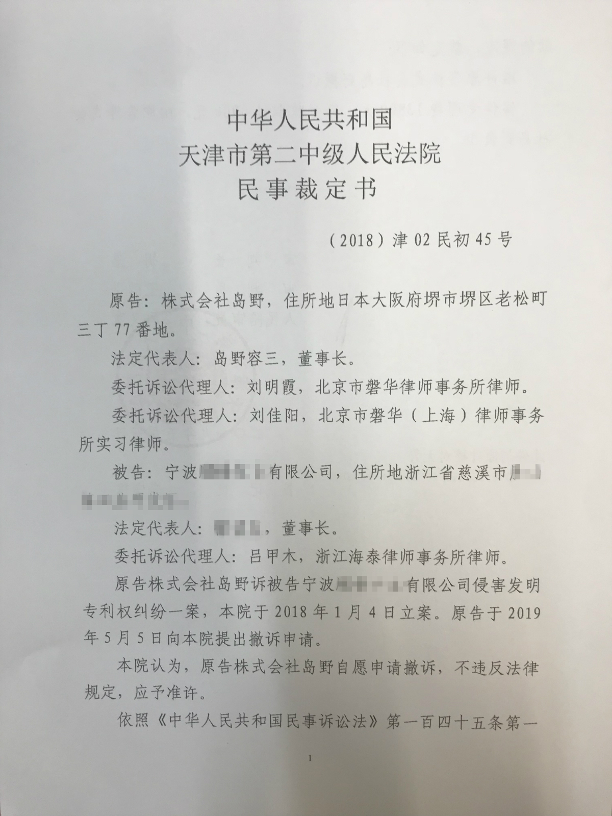 2018年1月4日,禧玛诺集团诉某宁波企业侵害发明专利纠纷一案,由天津市第二中级人民法院受理立案。该宁波企业委托吕甲木律师作为案件诉讼代理人。