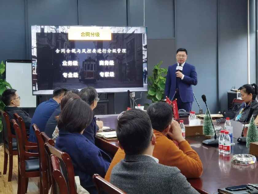 本次培训主题选取企业经营活动中的最常见的合同合规领域,邬律师从合同合规及风控管理的科学策略入手,对企业合同按照“业务级、商务级、专业级、专家级”进行分级,以及按照“标的金额、交易对手、关键程度、全局影响”等要素进行分档管理,并指出目前绝大多数民营企业在合同风控上存在的“重签订、轻履行、忘终止”的普遍现象,并分别建议提升这三个阶段的不同意识,并给出了具体的指导意见与方法。