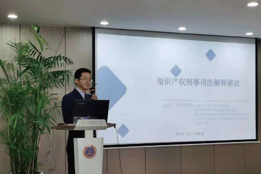 《知识产权刑事案件司法解释解读》讲座分享。讲座由绍兴市律师协会副会长冯坚律师主持,50余名绍兴知识产权和刑事领域的律师,以及海泰知识产权部负责人乐柯南律师、
