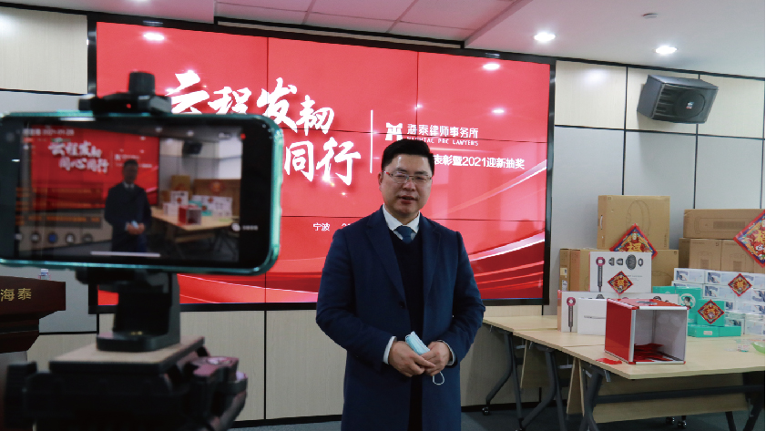 岁序常易,华章日新。2021年1月28日下午,浙江海泰律师事务所2020年度表彰暨2021迎新抽奖庆典于总所大会议室圆满举办。为配合做好防疫工作,本次大会以线上线下同步直播的形式举行,全所人员线上参观看直播,线上线下共聚一堂,欢庆盛典。