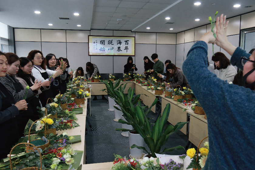 3月5日下午,海泰所“春暖花开 相约3·8”插花活动如期而至,在女神节的浪漫氛围中,海泰女神们伴着馥郁的花香,思量花材、裁草剪叶、抚花弄枝、布置花供,一件件充满春日芬芳的插花作品呈现眼前。